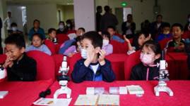 在志愿者讲解眼球结构以及近视和远视的原因以及为什么戴眼镜可以让我们看清楚的过程中,一位小朋友的家长表示:“我们家孩子特别喜欢玩手机,刚好让她来看看这个讲解,这样小孩就可以知道保护眼睛的重要性了。作为家长觉得今天所开展的一系列活动很有意义,非常希望学校以后多多举办这些活动。”在志愿者们介绍显微镜的结构过程中,家长们也积极参与进来,和孩子们一起观察不同切片的结构,孩子们积极提出问题“为什么这个细胞是紫色的啊?”,“这个是怎么看到的啊?”,队员们认真解答孩子们的疑问,并在进行操作演练之后让小朋友们自己进行动手实操观察不同细胞。在进行“夺宝奇兵”编程操作比赛的过程中,小朋友们认真聆听活动规则,积极组队报名,“我还想再玩一次能不能再参加一次?”“现在还能再报名这个活动吗?”,孩子们一起共同协作获得比赛的胜利,一位小朋友告诉我们:“我特别喜欢玩这个,我可以和我的朋友一起,然后打败别人获得胜利,下次我还要来玩!”。