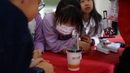 “小朋友们知道为什么眼睛会近视吗?”“哇塞,我看到了这个细菌结构!”“耶,我们比赛赢了!”“孩子,你真棒!”“这个火箭也太酷了吧!”随着活动的进展,孩子们沉浸在科学的魅力之中,此起彼伏的惊叹声传遍了整个大厅。